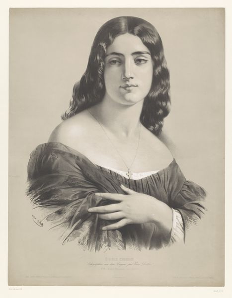 Editor: This is "Portrait of a Woman in Regional Costume," a pencil drawing made by Bernard Romain Julien sometime between 1848 and 1853. She looks a little melancholic, don't you think? It’s almost photographic in its detail. What draws you to this work? Curator: It has a stillness to it, doesn't it? The way the graphite caresses her features. She feels like a whisper from another time, a ghost of a fashion long since past, clinging to existence with quiet dignity. What do you make of her adornments? Her jewelry? Editor: I guess they are part of her regional costume, like it says in the title? Those earrings are fascinating. It's like she's carrying tiny globes dangling from her ears. And her necklace… Curator: Yes, look closer. Don't they echo, in a way, the circular decorations of her dress, lending an almost dreamlike and circular continuity to her personage? It is also rendered with impressive economy; this portrait whispers rather than shouts. A certain gentility is offered; don’t you find? Editor: Absolutely. You can really see the care that went into creating all these different textures just with pencil. It's subtle but beautiful. It really captures a moment in time, preserving something that might otherwise be forgotten. Curator: Indeed. We project ourselves into its quiet moment. Its stillness acts as an antidote. It becomes not only about seeing but feeling— a momentary act of quiet and reflective preservation. I wonder, in viewing it, what are we preserving ourselves? Editor: I never thought about it that way, but I think I get it. It's like the artwork becomes a mirror reflecting back more than just an image. Thanks! Curator: The pleasure is all mine. Art often invites such quiet reflection, does it not?