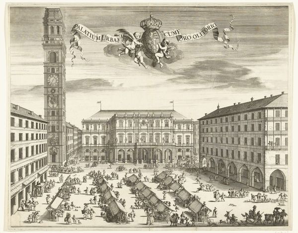 Carlo Gregori created this print of the Piazza della Signoria in Florence sometime in the mid-18th century. As an engraver, Gregori’s work served to document and disseminate images of Italian life and culture, catering to the interests of the Grand Tourists passing through Italy. Here, we see the Piazza transformed into a stage for the Feast of Homage, celebrating St. John the Baptist, the patron saint of Florence. The image meticulously captures the architecture, the procession, and the spectators, each element reinforcing a clear social hierarchy. Note the contrast between the active, almost chaotic procession, and the still, observing figures. In the foreground, the elite are marked by their elaborate attire and leisurely demeanor. They stand in stark contrast to the uniformed military personnel and the anonymous crowds, reminding us of the power dynamics at play in these displays of civic pride. This print is not just a record of a Florentine festival; it’s a study in 18th-century social dynamics, carefully composed and etched into a metal plate. The print leaves us to consider who is performing, who is watching, and ultimately, who benefits from the spectacle?