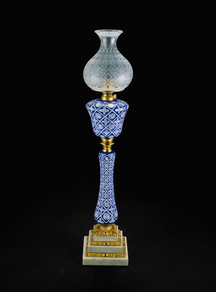 Curator: The work before us, presently residing here at the Minneapolis Institute of Art, is a ceramic earthenware piece by Joseph-Théodore Deck, entitled "Vase in the form of a mosque lamp," created around 1870. What strikes you initially about this object? Editor: Well, aside from the fact it feels a bit paradoxical—a vase imitating a lamp—the most striking feature is its rich ornamentation. A blend of blues and greens set against that crisp white calligraphy. It feels quite opulent, almost ostentatious. Curator: I agree. The color palette carries certain cultural weight. The turquoise specifically, appearing repeatedly, holds great symbolic importance in Islamic art—often linked to notions of paradise and purity. This shade, combined with the stylized calligraphy, transports the viewer. Editor: Yes, and considering Deck's broader artistic context, it’s fascinating to see how he absorbed and reinterpreted Islamic motifs, given that he wasn’t part of that cultural milieu himself. The mosque lamp, traditionally holding profound spiritual significance within Islamic architecture, takes on a new identity here—transformed into a decorative vessel for a European audience. What do you make of that translation? Curator: It reflects the 19th-century Orientalist fascination with the ‘exotic’ East. While some view Orientalism critically as a projection and distortion, it also fostered an exchange of artistic ideas, seen in Deck’s emulation and adaptation. The inclusion of this imagery created a potent symbolic association with spirituality. Do you consider that valid? Editor: Valid, but within limits. The decorative aspect almost overshadows any deeper understanding. The object flattens complex cultural realities into pleasing aesthetics, which risks losing its original meaning. Yet, one might also argue that Deck's adaptation made Islamic art more accessible, even fashionable. What remains crucial is understanding that translation comes with a heavy dose of interpretation and historical context. Curator: Ultimately, the object speaks volumes, sparking discussion around cross-cultural influence, artistic license, and how societies assign new significances to imagery across different eras and geographic contexts. Editor: Indeed. This vase stands as a reminder of how cultural symbols evolve and the nuanced ways art both reflects and shapes historical perceptions.