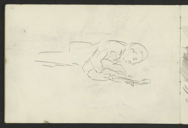 Curator: Before us, we have "Standing Man, in Profile," a drawing by Isaac Israels. It's believed to have been created sometime between 1875 and 1934. The work is done in pencil, featuring delicate line work. What's your initial response to this image? Editor: Stark. Sparse, almost to the point of being unfinished, but also incredibly intimate. The minimal lines make me feel like I'm peeking into the artist's private sketchbook, witnessing a fleeting moment of observation. Curator: I agree with that sense of intimacy. The seeming immediacy aligns well with Israels’ involvement with Dutch Impressionism, seeking to capture momentary glimpses of modern life. The quick strokes and the unassuming nature of the medium create an accessible feeling. What symbols or archetypes emerge for you in viewing this figure? Editor: Well, the bent posture carries weight. I see the archetype of weariness, perhaps the burden of labor, the weight of the world on his shoulders, however temporary. It makes me think about the lives of ordinary people in his time. I want to know about their stories. The drawing serves as a poignant reminder of how social realities shape artistic representations. Curator: And considering the era during which Israels was most active, his sketches often depicted the working class. It highlights the democratizing tendency within Impressionism itself. It suggests an openness to representing subjects that academic art traditions may have considered unworthy of attention. This would include female factory workers, street vendors, even this anonymous standing man, perhaps caught unaware in a private moment of introspection. Editor: Precisely. Beyond the symbolism, the technique itself bears mentioning. The reliance on lines is almost calligraphic, yet it still captures the essential human form with surprising accuracy. The visual narrative of each stroke is almost musical; quick notes dashed across a page. This contrasts so heavily with more staged, painterly depictions, underscoring that sense of genuine observation again. How would you position this drawing relative to more finished, formal portraits in art history? Curator: In my estimation, it acts as a counterpoint. The reduction to essence challenges conventions around idealization or formal presentation. It reminds us that representation can happen through suggestion as well as detailed replication. I would say it encourages viewers to consider the myriad approaches available to artistry. Editor: It certainly inspires a thoughtful pause. Seeing the personhood conveyed here in so few lines, invites us to ponder art’s accessibility, how we might see others, and maybe even see ourselves a little differently, too. Curator: Well said. Thank you, these fresh impressions have helped contextualize this powerful sketch!