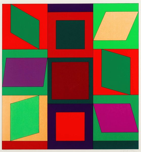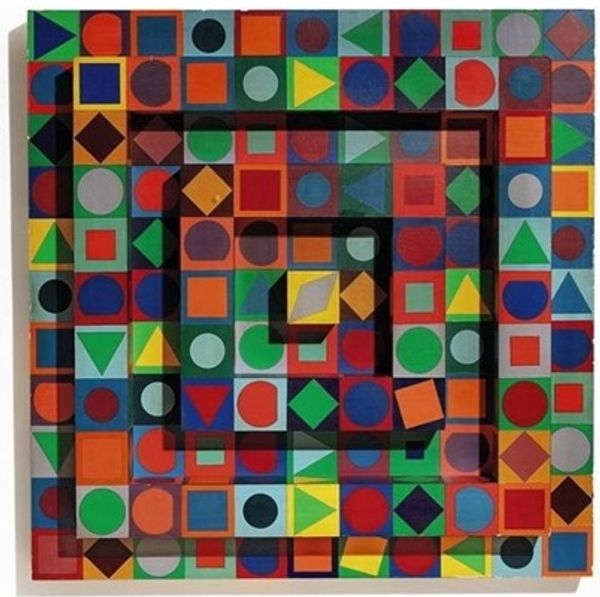 Sarah Morris made this painting, Eletrobras [Rio], with enamel on canvas, and it's all about clean lines and vibrant color blocks. Right away, you notice how the shapes interact. It’s like she’s laid down these crisp boundaries, and then filled them in with a palette that feels both retro and futuristic. Looking closer, you get a sense of the slickness of the enamel, that industrial, smooth surface that reflects light in a very specific way. There’s no visible brushwork, which makes it feel less about the artist’s hand and more about the design itself. See that thin, burnt-orange line that outlines each shape? It's so precise, holding everything together while creating a subtle vibration against the other colors. That one little orange line is doing so much work. Morris's work reminds me a bit of Bridget Riley's Op Art, but with a cooler, more architectural edge. Both artists play with perception, but Morris brings in this element of corporate identity and urban planning, turning the canvas into a kind of playful, yet critical, map. It's a space where geometry meets emotion, and where seeing becomes an active, thinking process.