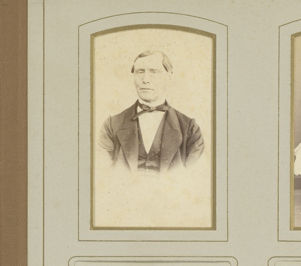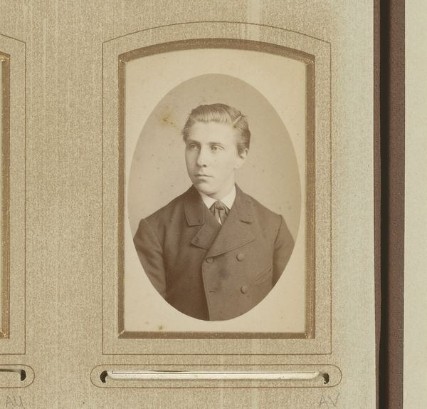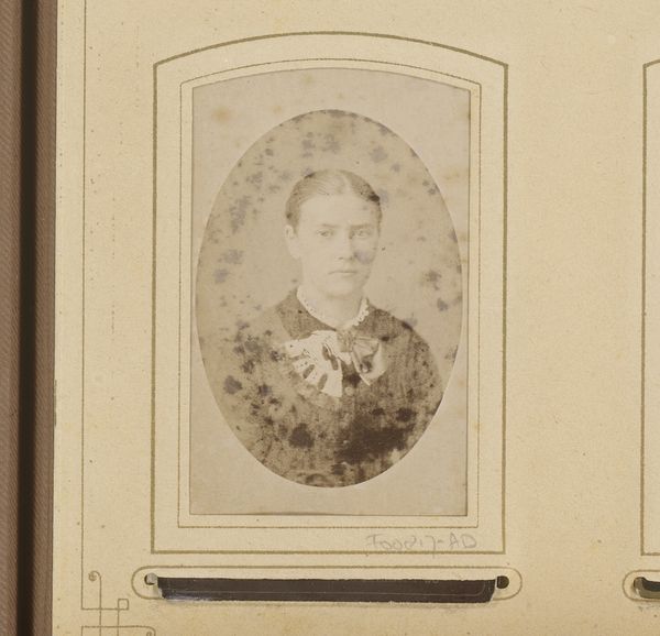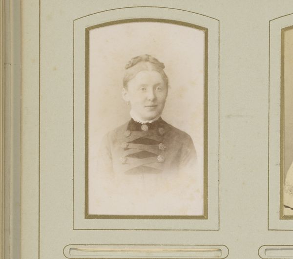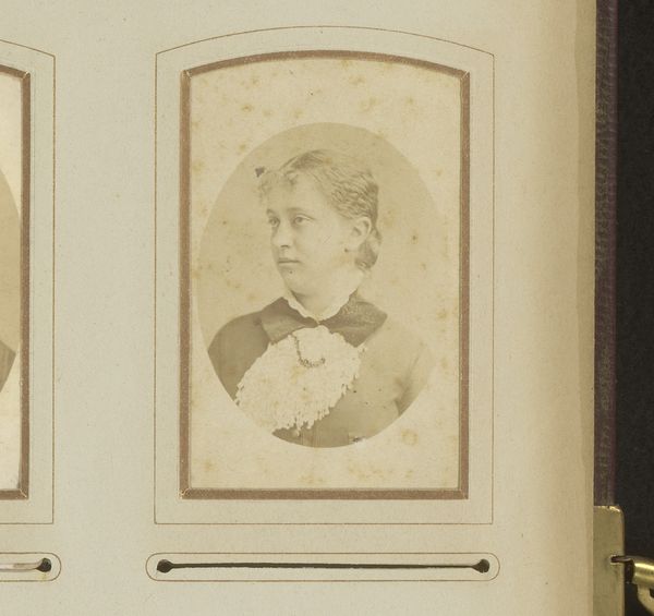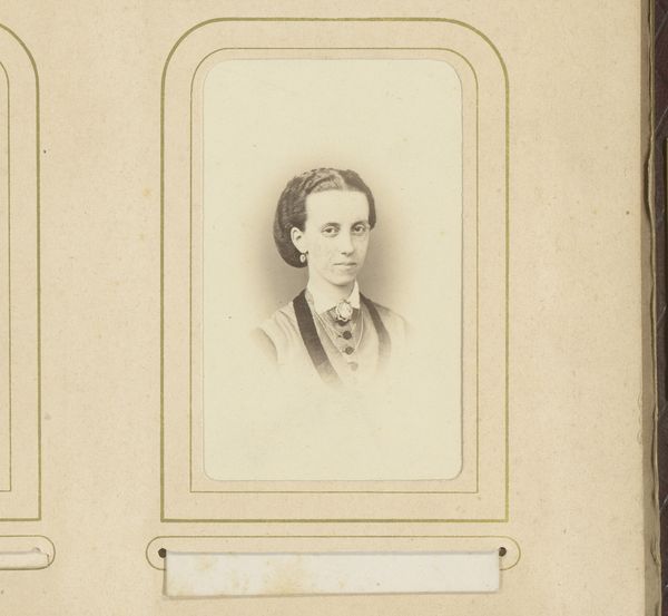 Jacob Kuyper's "Portret van een vrouw met oorbellen" is a striking photographic portrait framed in an oval mount. The photograph presents us with a composition of geometric forms. The oval of the portrait contains the rectangle of the woman's torso, all softened by the muted tones of the sepia print. This portrait exists within a complex semiotic framework. The woman's direct gaze and central positioning suggest an assertion of identity, while the formal attire, including the titular earrings, hints at cultural codes of status and presentation. The softness of the photographic medium contrasts with the sitter’s rigid posture, creating a tension that invites us to question the constructed nature of portraiture itself. Consider the historical context. Photography was still a relatively new medium, and portraiture served as a powerful tool for constructing and communicating social identity. "Portret van een vrouw met oorbellen" reflects an era grappling with new forms of representation. The interplay of light, form, and social signaling creates a space for continuous re-evaluation, challenging any singular interpretation.