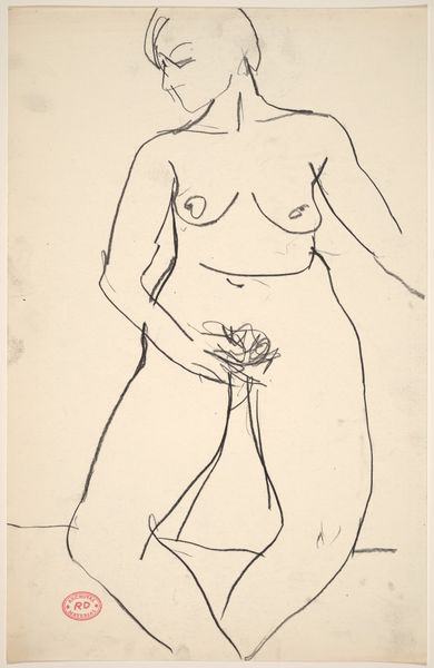 Editor: Here we have "Bathing Naked Woman by Moonlight," a 1939 ink drawing by Tinus van Doorn, held at the Rijksmuseum. The simple, almost naive lines give it a dreamlike quality. What strikes you about this work? Curator: What interests me immediately is the artist's deliberate choice of materials and technique, and how that connects to the social context. Look at the economy of line, the starkness of the ink on paper. This was made in 1939; think about the scarcity and the rationing that existed then. Could that influence the artwork? Editor: That’s a perspective I hadn’t considered. So, you’re suggesting that the simplicity might not be just an aesthetic choice, but also a reflection of the limited resources available? Curator: Precisely! How does this challenge the prevailing view that "high art" is intrinsically separate from the practicalities of daily existence or "craft" produced of necessity? What is deemed artistic and the labour in making it becomes linked to these social restraints. Editor: That’s really interesting. I always focused more on the emotional content of the art. Curator: Do you think it affects how we interpret the figure? Does the stark style affect how you relate to the body? How does a minimalist nude function in relation to traditional oil paintings? Editor: Good point! By stripping it down, the focus shifts to the woman’s form in a fundamental way, which has its own raw appeal in contrast to the paintings you mentioned. Also the simple lines have more expressive potential as the drawing takes on new emotional dimensions depending on the viewer’s experience. Curator: It suggests, perhaps, that Van Doorn intended a break from earlier representation models – less objectification, more essence. I wonder, in this period, whether Van Doorn consciously was making his own consumption visible and making his work “earthier”, or, closer to material consciousness in production? Editor: I never considered those things, I'm really thinking differently about this drawing now, thanks! Curator: Indeed! We need to continually investigate the artwork as a product of particular conditions, to better appreciate it!