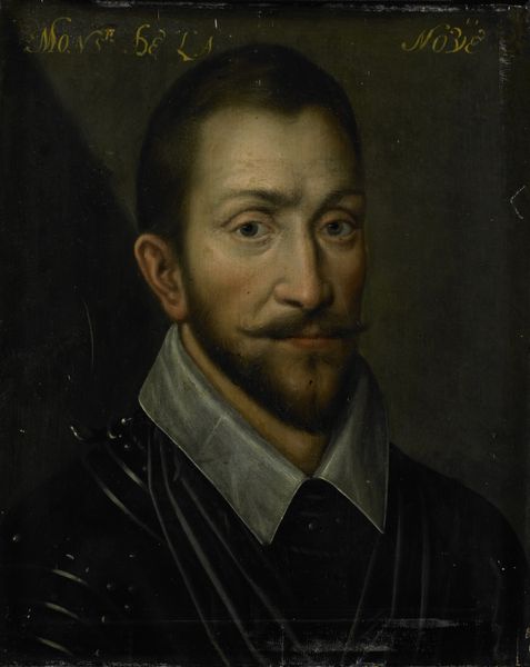 Curator: Paolo Veronese's "Self-Portrait," created around 1563, currently resides in the Hermitage Museum. It's rendered in oil on canvas. My first thought? Stark. Stripped down. There's almost nothing to visually grab onto beyond the figure. Editor: The severe, almost severe, dark background forces all the attention onto Veronese's face and attire. The plain background throws his identity into high relief as he presents himself to posterity. Notice the rich, varied browns in his hair and beard. I see ambition, even pride, but tempered with intellect. What do you make of it? Curator: Absolutely. He's intentionally controlling our gaze. The near-absence of adornment directs focus on his facial structure and that penetrating gaze. But note, too, the arrangement of the buttons down his doublet and how it contributes to a controlled vertical movement that terminates precisely at the edge of the frame. The very precise lighting across his face seems deliberately deployed to draw you in and around. What cultural symbolism or history do you glean from this portrait? Editor: Veronese is declaring his status. The meticulous details of his lace collar and carefully arranged beard signal respectability. The hint of red on his sleeve - what could that symbolize? Blood, power, life itself? This feels like a conscious creation of persona, a Renaissance man shaping his image. It seems as though he almost offers us an austere reflection back into the past. Curator: And that restrained color palette really amplifies it. Veronese masterfully used light to reveal shape and volume, imbuing the figure with palpable weight within that very controlled space. Consider the implications in Venetian painting, how it challenged painting styles elsewhere with its intensity and drama. What feelings might this portrait have evoked for the original audience? Editor: Undoubtedly, this work evoked admiration and a sense of awe for the talent of Veronese. We feel that same sense of respect and appreciation today. It invites speculation about the cultural significance that personal identity had within that time. The "Self-Portrait" becomes a timeless reflection of the artistic consciousness, bridging us to the Renaissance world through art. Curator: I appreciate how exploring its formal components underscores how skillfully Veronese commands the viewer's gaze, even now. Editor: Yes, an icon silently but persuasively asserting himself through visual cues across centuries of history.