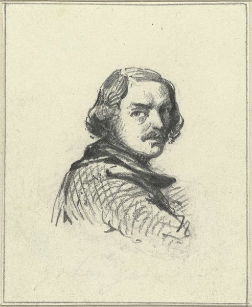 Curator: The subject’s got that very particular air about him – that of someone who's just had a rather surprising revelation. The furrowed brow, the eyes that say, "Well, I never!" It’s captivating. Editor: I find that sentiment interesting, especially given that this is a pencil drawing of Egbert Meussen Kortenaer, dating back to sometime between 1796 and 1849, courtesy of Albertus Brondgeest. It's interesting you call it captivating, as it’s definitely one of the more reserved portraits in this collection, in my view. Curator: Reserved, yes, but there's something so wonderfully human about its imperfection. This isn’t some godlike, flawless depiction, thank goodness! I'm getting a lot from the symbols— the draped sash with elaborate trim might be related to civic duty. Editor: The slightly skewed symmetry, perhaps. It does seem more attuned to presenting the *man* Kortenaer, more than *Mister* Kortenaer. Curator: Exactly! The fact that it's a pencil drawing makes it feel all the more intimate, don't you think? Like a stolen glance, a fleeting moment captured. A reminder that even historical figures were just people. Editor: Absolutely. The medium itself becomes a symbol of accessibility, a direct line to a past individual. The use of pencil lends an immediacy. We're so accustomed to portraits of this period employing oils for their inherent capacity for capturing luster and detail; it sets this work apart. Curator: I wonder what Kortenaer himself would make of our conversation! Probably shrug, adjust that rather fetching cravat, and say, “Well, did you capture the real me, or did you make me prettier?” He looks as if he knew about scrutiny. Editor: It prompts reflection, really, on what endures of a person—not just the carefully constructed facade of an oil painting, but, instead, a fleeting trace. Curator: And maybe that trace is where the truest essence resides, wouldn’t you say? Editor: Perhaps, perhaps... Now, there's an avenue worth exploring further!