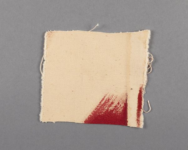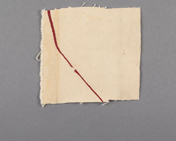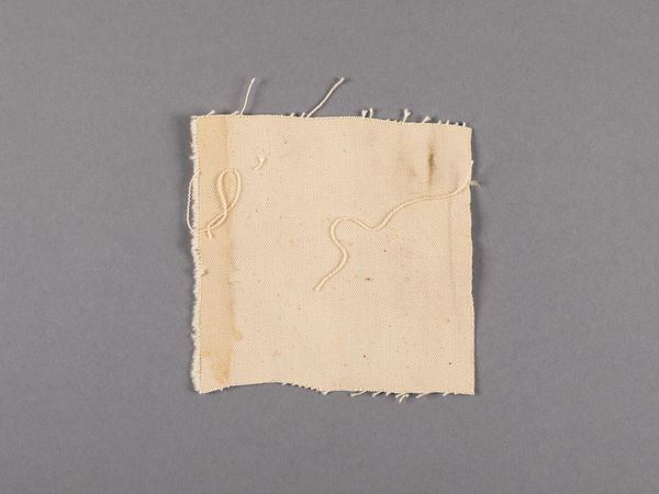 Curator: Up next is Barnett Newman’s "Canvas fragment," currently held in the Harvard Art Museums collection. Editor: It’s strangely… intimate. Raw canvas, fraying at the edges. I’m immediately drawn to the history of the material itself. Curator: Absolutely. For Newman, the canvas functioned as more than just a surface. It was a field for profound spiritual and existential statements. Even a fragment carries that weight. Editor: I wonder about its life before this. What larger work did it come from? What colors, what gestures did it once support? The weave itself tells a story of industrial processes and human labor. Curator: Consider how this remnant invites contemplation on the creative act, and the symbolic weight the artist imbued in such rudimentary material. Is it incomplete, or a complete thought in itself? Editor: It makes me question what we value in art. Is it the finished product, or the evidence of its making, the labor, and the inherent qualities of the materials themselves? Curator: I see a hint of both. This fragment retains Newman's artistic intention, but it also reveals the materiality that gives form to that intention. Editor: A humble piece, yet it sparks so many questions about the art-making process and what constitutes value.
