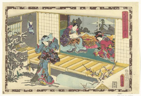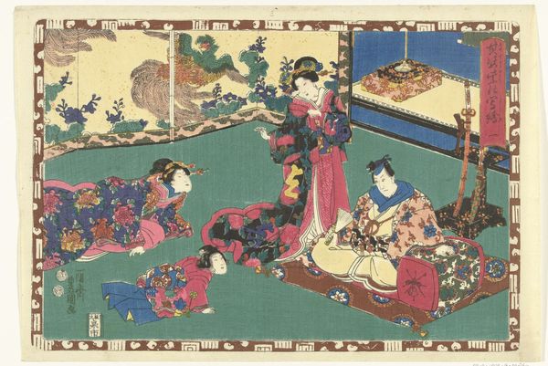 This print, crafted by Utagawa Kunisada, presents a scene brimming with visual and cultural symbolism. The courtesans, adorned in elaborate kimonos, gather under the soft glow of paper lanterns, a motif deeply rooted in Japanese culture representing ephemeral beauty and celebration. Consider the presence of flowers on the kimonos, emblems of transient beauty and the fleeting nature of life, echoing sentiments found in ancient Greek “vanitas” paintings. These blossoms are reminiscent of those adorning Botticelli’s “Primavera”, where Flora scatters flowers, symbolizing renewal and the cycle of life. Here, however, in this artwork, the artist infuses the composition with a poignant awareness of life’s transience, engaging viewers on a deep, subconscious level. The lantern, too, reappears through history as a guiding light in times of uncertainty. Think of its presence in Renaissance paintings, illuminating sacred spaces and the faces of philosophers. But here, its glow softens the atmosphere with a sense of melancholy, reminiscent of a stage set for an emotional drama. This cultural memory, this collective dream, resurfaces and evolves, reminding us that symbols never truly fade.