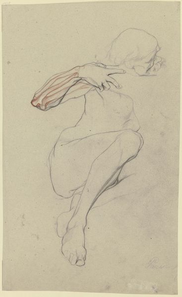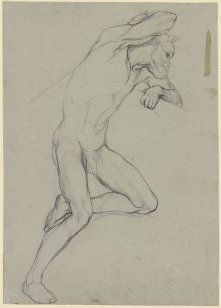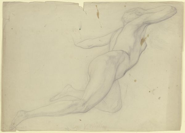 Georg Kolbe made this drawing of a huddled female nude, probably in the 1920s, with graphite on paper. The whole thing’s an exercise in tone, with these incredibly subtle shifts from light to dark. The strokes are tentative, like he’s feeling his way around the form, but also so confident in their placement. Look at the way he defines the curve of the back with a single, unbroken line – it’s both precise and gestural. I’m really drawn to the area where the head is bowed. There are these wild scribbles that almost obliterate the form, but somehow they convey so much about the weight and vulnerability of the figure. I’m thinking of other artists like Rodin and Schiele, who used a similar kind of raw, expressive line to capture the human body in all its messy, imperfect glory. It's like a conversation about how we see and feel, stretching across time.