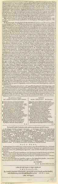 Curator: Good morning! Let’s explore this piece, "Siege and Capture of Den Bosch by Frederik Hendrik, 1629 (text sheet)" made around 1630 by Cornelis Danckerts I. It's an engraving, currently held in the Rijksmuseum. At first glance, it mostly appears to be an expanse of dense text. How would you interpret a piece like this? What aspects stand out to you? Editor: Well, it's a bit overwhelming, honestly. It looks like a block of text with not much visual interest, at least at first glance. I see this must have been the news, what we might see on television, in our modern world. What was the intention here, since it is a historical document about an important siege and the cultural memory for an important victory? Curator: Precisely. The sheer density itself communicates a cultural imperative. The Dutch Golden Age was obsessed with chronicling events, weaving tapestries of textual detail. Think of it as a visual and cultural performance, enacting and recording history simultaneously through symbols and written form, reflecting their collective identity and national pride. Consider what aspects the artist or publisher chooses to record, in text form, and how people might pass the broadside in the streets and choose what part they need to see. Editor: So, it's not just about recording facts, but also shaping how people understood their history and identity through the act of storytelling itself, and how the choice of content helps with propaganda about this important Dutch victory? Curator: Absolutely! Notice how the text might function almost as a relic or emblem. It represents the weight of historical events, rendered permanent through ink, resonating as cultural memory passed down through generations. Editor: It’s amazing how something seemingly simple can hold so much cultural significance. Curator: Exactly! By understanding the power of symbols, we reveal deeper truths about human experience across time and place. It’s a potent reminder that art serves not just as aesthetic enjoyment, but as a vessel of our shared humanity.