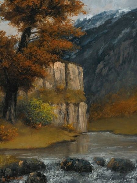 Gustave Courbet made this landscape painting with oil on canvas sometime in the mid-19th century. Courbet was known for his commitment to Realism, a movement that sought to depict the world as it is, without romanticization. He was particularly interested in representing the lives and experiences of ordinary people, and you see it in the physicality of the painting itself. You see the textured brushstrokes and earthy tones that give the rocks and water a tangible presence. This attention to the material qualities of paint and canvas was a departure from the smooth, idealized surfaces of earlier academic painting. Courbet's choice of subject matter and his direct, unvarnished technique challenged the conventions of the art world, and also of wider social issues of labor, politics, and consumption. His paintings invited viewers to engage with the world around them in a new and critical way, emphasizing the importance of observation, experience, and the inherent qualities of the materials used.