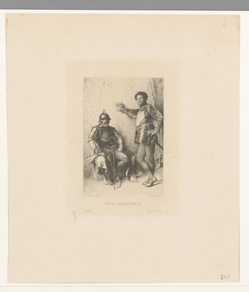 This lithograph, by Auguste Raffet, captures a moment of intense conflict. Note the raw emotion conveyed through the figures' gestures; specifically, the dominant image of one soldier seizing another by the throat. This motif, of grasping or restraining, appears throughout art history, signifying power, control, or even desperation. Think of the wrestling matches of ancient Greece, where the grip determined the victor, or the religious iconography of saints holding down demons. But here, the act carries a primal charge. It speaks to the immediate, life-or-death struggle on the battlefield. We are reminded of the inherent violence in man, a psychological undercurrent that surfaces during times of war. This image has a cyclical resonance, an echo of past conflicts. It has an emotional power, engaging viewers on a deep, almost subconscious level. Through Raffet’s eyes, we witness not just a battle, but a timeless symbol of human aggression.
