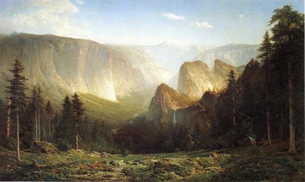 Thomas Hill painted "Mountain of the Holy Cross," capturing the iconic Colorado peak. This work reflects the 19th-century American fascination with landscape as a symbol of national identity and divine presence. At first glance, it's a serene vista, but we have to consider the context of westward expansion and its impact on indigenous populations. The symbolic weight of the cross, a Christian symbol, imposed upon the land invites questions about whose spirituality is being centered and whose is being erased. The painting evokes the concept of Manifest Destiny, intertwining religious and nationalistic fervor with the landscape. The artistic skill in rendering light and shadow invites an emotional connection to the scene. However, the narrative of untouched wilderness obscures the complex histories and displacement enacted upon the land. Hill's painting prompts us to reflect on the intersections of faith, nature, and nationhood in the American experience, asking us to consider whose stories are visible and whose remain hidden.