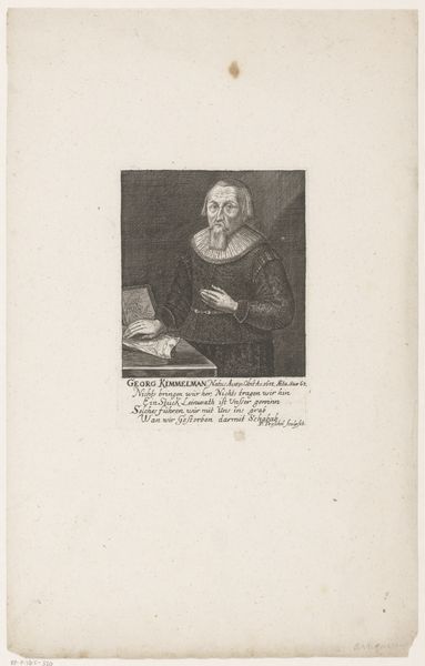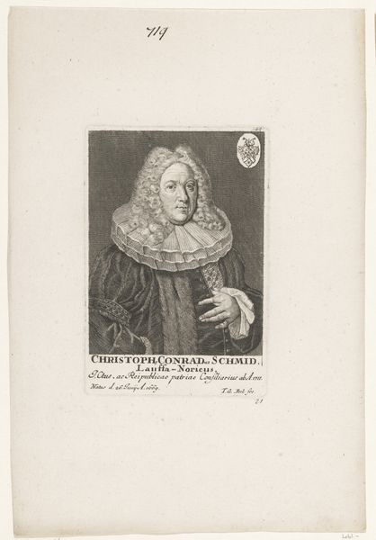 Tobias Gabriel Beck made this print of Georg Woelcker. The image is a study in the visual codes of status in the 17th and 18th centuries. Woelcker's prominent ruff collar and fur-lined coat signal his wealth and position. The inscription below the portrait details his titles, emphasizing his service to both the Holy Roman Empire and France. This was a period of intense political negotiation. The print not only immortalizes Woelcker's likeness but also serves as a public declaration of his alliances and influence. To understand this image, we need to dig into the political structures of the Holy Roman Empire, the role of diplomacy, and the visual language of power. Prints like these were not merely decorative; they were tools for shaping public perception and reinforcing social hierarchies.