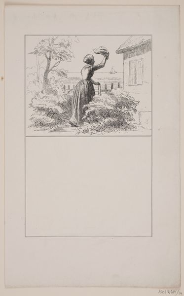 Gijsbertus Johannes van Overbeek made this drawing, "Meisje probeert een kat te vangen," probably with pen and ink, and I love the simplicity of its marks. It’s all lines, hatching and cross-hatching, to make the tones, and it's like he's thinking out loud on paper. What strikes me is the texture and the way the paper itself becomes part of the image. The varying pressure of the pen creates depth, making some areas darker and denser than others. Look at the playful lines that create the foliage; they’re almost scribbled, but so full of life! And that cat perched up in the tree – it’s like he’s saying: "You’ll never catch me!" The whole thing feels so spontaneous, like a moment captured in a breath. Van Overbeek reminds me a little of Saul Steinberg, who also had this incredible ability to say so much with a few lines. This piece is a reminder that art doesn’t have to be complicated; sometimes, it’s the simplest gestures that speak the loudest.