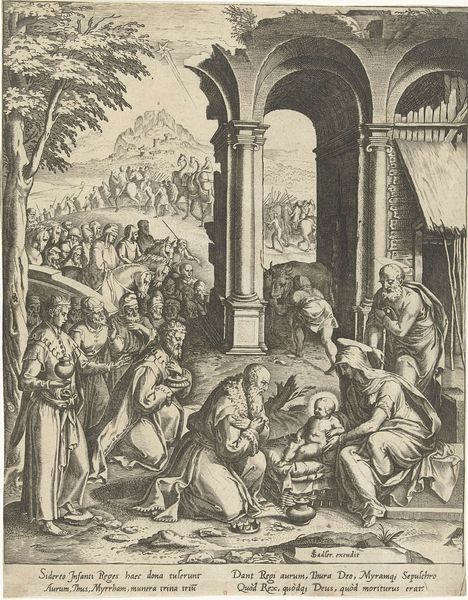 This anonymous work, "Flora en Bacchus," captures a scene of classical revelry in ink on paper. It evokes a world where pagan gods frolic amidst idealized landscapes, reflecting a Renaissance fascination with classical antiquity. The figures of Flora, goddess of springtime, and Bacchus, god of wine, are central. The image might offer a glimpse into the era's complex relationship with pleasure and indulgence. Bacchus, surrounded by cherubic figures, raises a leafy branch in celebration, while Flora, regal and composed, presides over the festivities. The image is rich in its depiction of gendered roles. Flora's poise contrasts with the wild abandon of Bacchus and his followers. A female figure kneels before Flora, perhaps seeking her blessing. The image seems to celebrate the feminine as a source of both beauty and beneficence. Yet, it also suggests a certain power dynamic, hinting at a society where women's roles were carefully circumscribed. The print thus becomes more than just a depiction of mythological figures. It is a window into the complex, multifaceted world of the Renaissance, where beauty, pleasure, and power were intertwined.