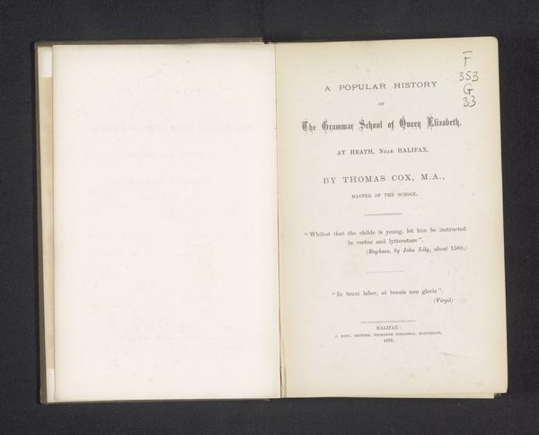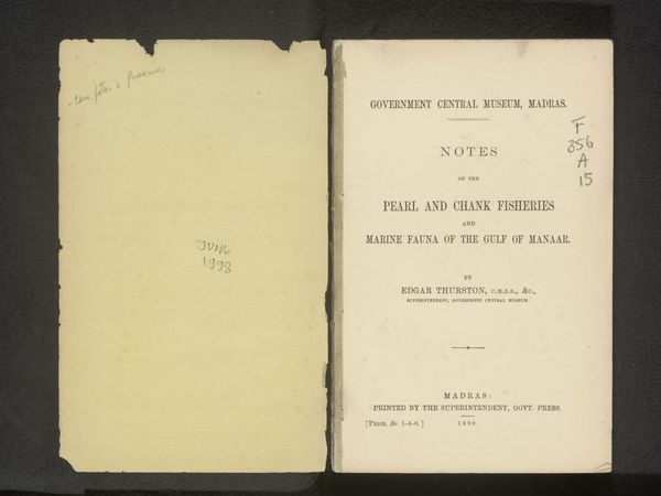 Curator: We're looking at an early edition of "The Theatre," a monthly review edited by Clement Scott, dating back to 1883. The texture of the paper itself speaks to an age of dramatic transformation. Editor: I am immediately struck by its severe typographical layout, the black ink almost swallowed by the off-white of aged paper. It's heavy and reserved— a fitting reflection, perhaps, of late Victorian sensibility. Curator: Observe the deliberate arrangement of text on the page, each line meticulously placed. Notice, too, the title: "The Theatre," in a strong, declarative font at the very top. Consider how it serves as a central signifier. Editor: Absolutely. And it also speaks of the cultural significance invested in the dramatic arts. The title, coupled with the emblem and dedication, signals a publication attempting to bestow legitimacy on its subjects. It seems poised to solidify its position within the established literary and art world. Curator: Exactly, a subtle dance of form and function! What interests me most is how this design aesthetic conveys so much about the values assigned to the drama, music and fine arts within the broader social context of 1880s London. There’s an attempt here, too, at objectivity, in its rigid structure. Editor: Do you really see objectivity? The choice of title itself asserts influence! Even typography communicates. That restrained typeface exudes authority; its legibility, an implicit claim to be taken seriously within academic or intellectual spheres. Curator: A valid point. This work is not merely about aesthetic, but also intent—an argument subtly crafted within its form. The scale too-- the choice of making this accessible through printed publication democratizes theater commentary beyond elite circles, but is controlled by publishers. Editor: Precisely. Reflecting on the cover, it’s like peering into a moment of dramatic interpretation where tradition seeks validation against shifting cultural values within a quickly modernizing era. Curator: I appreciate the nuance, and as someone involved in editing these reviews, Scott, clearly, considered this presentation a pivotal reflection of himself. Editor: I agree; even such minimalist graphic art becomes imbued with intent, symbolism and the fascinating dance of how societies perceive and remember their values.