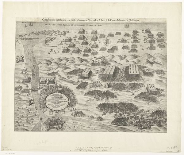 Pieter Bast's engraving, "Siege and Conquest of Bredevoort, 1597," captures a moment frozen in time. The bird's-eye view presents the city and its besiegers laid out with remarkable clarity. The muted tones and meticulous lines create a sense of detachment, inviting the viewer to consider the scene analytically. The composition is structured by the contrast between the organic sprawl of the landscape and the rigid geometry of the city's fortifications. This juxtaposition highlights the imposition of human order onto the natural world. The lines of marching soldiers create vectors of movement and tension. These intersect with the static walls of Bredevoort, underscoring the dynamic conflict. The semiotic weight of such imagery extends beyond mere representation; it invokes themes of power, strategy, and human will. Bast's engraving invites us to contemplate how such elements can distill complex historical events into codified visual forms.