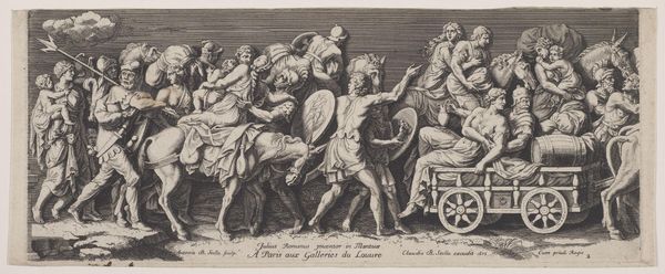 Editor: This print, "Cardinal Giovanni de' Medici Going as Legate to Florence" by Pietro Santi Bartoli, depicts a grand procession. There's a definite sense of power being conveyed. What historical narratives do you see at play here? Curator: It's crucial to recognize the Medici's political maneuvering. Bartoli represents Giovanni's return after his father's death. But it also speaks to the broader system of patronage and power within the Catholic Church. Where do we see this reflected today? Editor: So it's about understanding the visual language of power and how it perpetuates across centuries? Curator: Precisely. How does this imagery serve the Medici narrative? Who benefits, and who is marginalized? These are critical questions. It reveals the structures of privilege that were, and continue to be, entrenched in our institutions. Editor: I never thought about it in terms of who it leaves out. Curator: Art is rarely neutral. It reflects and reinforces social hierarchies. That is why we need to reflect on who is being portrayed and who isn’t. Editor: That's a compelling point of view. Thank you!