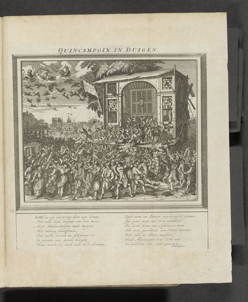 This print titled ‘Mallemolen van de Wereld’ – or ‘The Whirligig of the World’ – was made around 1720 by an anonymous artist, offering a glimpse into the social satire of the Dutch Golden Age. The image depicts a chaotic scene with figures scrambling for falling papers under a rotating structure, alluding to the frenzied pursuit of wealth and status during this era. The artist captures a society fixated on mercantile endeavors, including international trade, with a ship visible in the background, symbolizing both opportunity and the inherent risks of global commerce. The print critiques the superficiality of social hierarchies, where individuals from various classes are equally caught up in the pursuit of fleeting riches. It serves as a cautionary tale against unchecked ambition, reflecting the cultural anxieties of a society grappling with its own rapid economic expansion and moral implications. In its depiction of a world consumed by the pursuit of wealth, the print invites us to reflect on the human condition and the emotional toll of our desires, even today.