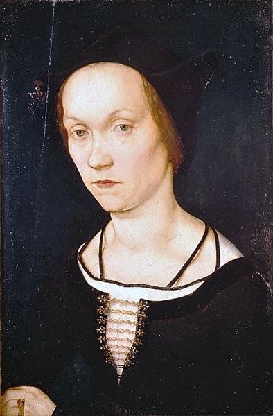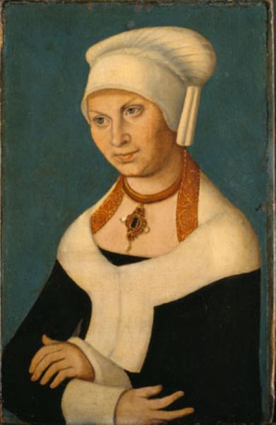 Editor: This is Lucas Cranach the Elder's portrait of Katharina von Bora, painted in tempera in 1528. I find her expression rather... reserved, even severe. The cool palette reinforces that feeling. What do you see in this piece, something beyond the surface portrayal? Curator: Indeed, Katharina was not just anyone; she was a former nun and, famously, Martin Luther's wife. Look closely at the clothing – the modesty, the deliberate covering. It speaks to a conscious reformation, both personal and religious. Consider the lack of ostentation, prevalent in many portraits of the time. Editor: So the plainness itself carries symbolic weight? Curator: Precisely! It signifies a turning away from the perceived excesses of the Catholic Church, embracing simplicity and a more direct relationship with God. Even the tight-fitting braids could be read as a signifier for self control and devotion. Don't you find it striking that a portrait, typically about displaying status, here conveys a spiritual message? Editor: I didn't consider the political undertones in something as seemingly simple as her clothing. That definitely shifts my perspective. Thank you! Curator: My pleasure! Looking at art through the lens of cultural symbols opens up entire worlds of meaning, revealing hidden stories within the visible.