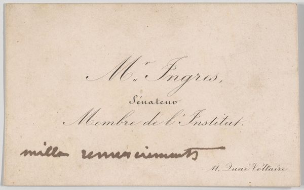 This is Darío de Regoyos y Valdés' business card, an invitation of sorts. It’s just a simple card with his name on it, but look closely. The ink isn’t uniformly black, there's a shimmer to it like it's catching the light, a certain darkness, depth and subtlety in the line. Like a painting, the process of creating this business card is not obscured. The script is elegant, but there’s a slight irregularity, the kind that makes it feel human. The ‘D’ in Darío, how it loops and curls, almost dancing on the paper. That single letter speaks volumes, it’s confident, yet playful, a reflection of the artist's spirit. It reminds me a little bit of Cy Twombly, how Twombly made his work look effortless and casual. This business card is more than just a name; it’s a whisper, an invitation to discover the artist’s world, a world full of feeling.