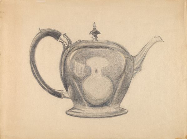 This Silver Teapot was conceived by Aaron Fastovsky, using graphite on paper. The drawing emphasizes the qualities of the silver material, its smooth, reflective surfaces, and the way light plays across its form. Fastovsky used graphite to mimic the metallic shine of the silver, carefully rendering the gradations of light and shadow to give the illusion of three-dimensionality. The process of drawing itself, with its careful attention to detail, echoes the labor-intensive processes of silversmithing. Consider the social context of such an object. A silver teapot like this would have been a luxury item, a symbol of wealth and status in a domestic setting. The production of such an object would have involved skilled labor, from the mining of the silver to the crafting and polishing of the teapot itself. The drawing, in its own way, pays homage to that labor, highlighting the craftsmanship involved in both its making and representation. Through his choice of subject and medium, Fastovsky invites us to consider the relationship between art, craft, and the social world.