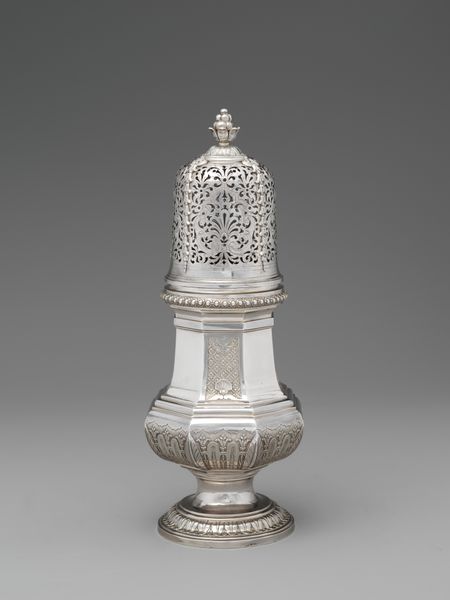 This silver caster was crafted by Josephus Pasperger I in the 18th century. Note the floral motifs adorning its surface. These aren't merely decorative; they echo the symbolic language of the era, where flowers represented transient beauty and the natural order. Consider how similar botanical elements appear in Renaissance paintings, framing sacred figures, or adorning the margins of medieval manuscripts, each time adapted, yet retaining a connection to nature's profound, life-affirming symbolism. These motifs carry a psychic charge, evoking feelings of growth, renewal, and our intrinsic link to the natural world. The caster’s shape, too, speaks volumes. Its rising form recalls ancient vessels used in ritual offerings, suggesting a reaching towards the divine. Though this object served a mundane purpose, its design subtly elevates the act of dining, reminding us of the deeper, often subconscious connections we maintain with symbols of nourishment and spiritual aspiration. These symbols, ever-changing, continue to shape our perceptions and experiences.