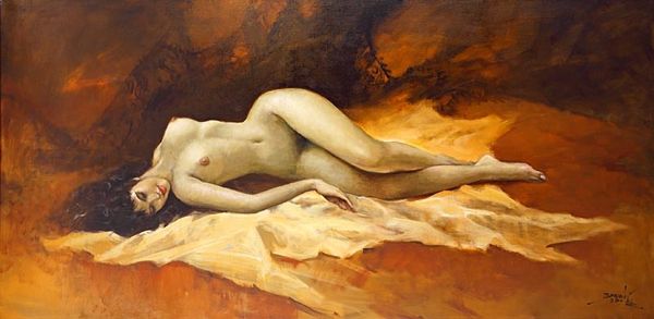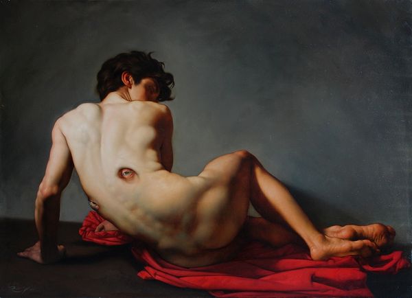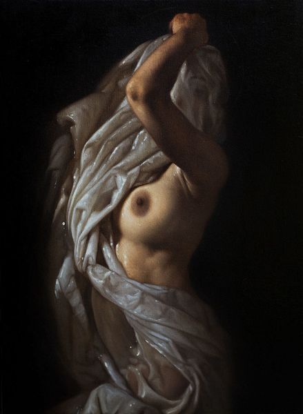 Jacob Collins painted this portrait in oils with an intention to capture a sense of vulnerability and introspection. The palette here is restrained, almost monochromatic, focusing on subtle tonal variations. It’s interesting to see how the muted earth tones create a sense of warmth, but there is something melancholy about it too, and it seems to draw the viewer in. The texture is smooth and even, almost classical. Close up, it's evident that Collins used delicate brushwork to create an image that feels both lifelike and dreamy. The way the light glides across the figure's skin is particularly striking, giving her a sculptural presence. There is this suggestion of something more, of secrets and untold stories. It brings to mind other figurative painters who explored the human condition with such sensitivity, like Lucian Freud perhaps. Of course, Collins brings his own sensibility to the genre, but it's all part of one big conversation, right?