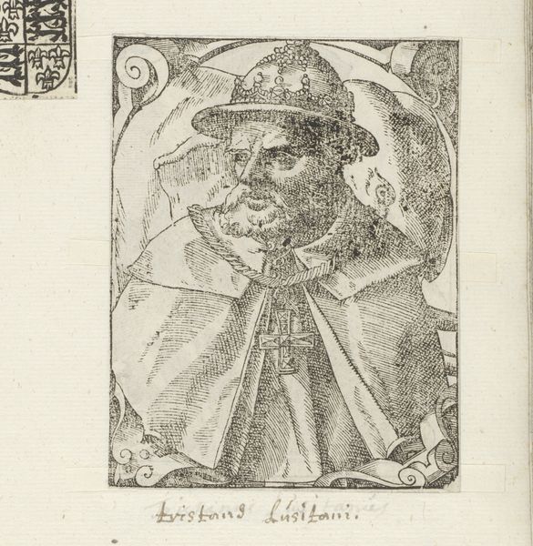 This is an engraving of Louis XII, King of France, made by an anonymous artist. The image is formed by carefully incised lines on a metal plate, likely copper, which would then be inked and printed onto paper. Notice how the artist has used hatching and cross-hatching to create a sense of depth and volume, defining the contours of the King’s face and the folds of his robes. The linear quality of engraving lends itself well to the precise details of the crown, scepter, and other symbols of royal authority. Engraving was a highly skilled craft, requiring years of training to master the techniques of cutting and shaping the metal. The resulting prints, like this one, were relatively inexpensive and could be widely distributed, making them an important medium for disseminating images and ideas. Consider the social context of this print, which allowed for the circulation of royal likenesses to a broader audience, playing a role in shaping public perceptions of power and authority. By understanding the materials, making, and historical context, we can fully appreciate its artistic and cultural significance, enriching our understanding of the history of craft and fine arts.