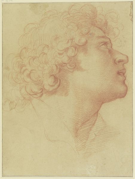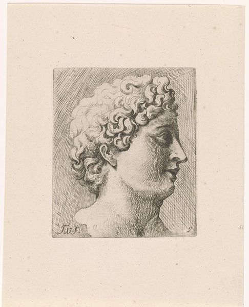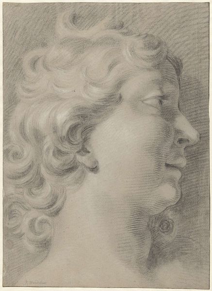 Curator: I am struck by the dramatic use of chiaroscuro; it lends such depth to the composition. Editor: This is "Boy with a Glass," an engraving by Johannes de (II) Groot, created sometime between 1698 and 1776. It is currently held here at the Rijksmuseum. One immediately observes the anonymous boy's peculiar relationship with class and privilege. Engravings like these democratized access to art, circulating imagery of the wealthy to broader audiences, though here we don't know the model, and this might be purely from the artist's imagination. Curator: Indeed. The high contrast not only sculpts the figure but isolates him, drawing our gaze to his features and the delicately rendered glass he holds. It almost feels like we're intruding on a private moment. I can sense some vulnerability but this could also suggest something about a staged representation. Editor: It is fascinating to think about who would have had access to engravings in the late 17th, early 18th century. Were these images consumed passively, or did they ignite aspirations and perhaps fuel social unrest? And in what settings would one display this, when one also considered decorum? What would an owner do with this artwork when in contact with a peer, versus when in contact with a servant? Curator: Consider, too, the technical skill evident in this engraving. The texture of the boy's hair, the subtle gradations of light across his face, all achieved with such precision through the delicate carving of lines. It demonstrates a real mastery of the medium. Editor: Looking closely at this print, one begins to appreciate how such images played a role in shaping social imaginaries during an era of both opulence and growing social inequalities. It is intriguing how a single artwork could speak volumes about the complexities of its time. Curator: And also reveal aspects about universal features that are timeless in a sense, when we reflect about life and portraiture, that is.