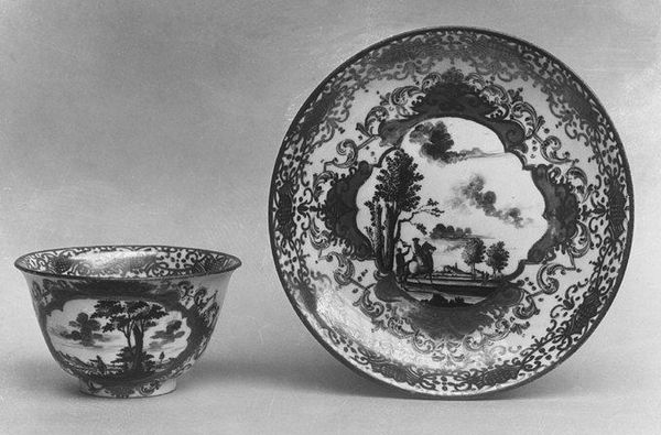 This porcelain cup and saucer were crafted by the Ludwigsburg Porcelain Manufactory. Notice the delicate floral motifs that dance along the rims of the cup and saucer, framing an idyllic scene. The floral motif, seemingly innocent, echoes through centuries. We see it surface in ancient Greek wreaths symbolizing victory and divinity, then bloom again in Renaissance tapestries signifying prosperity and beauty. But here, the flowers possess a particular poignancy. They evoke the fleeting nature of life, beauty, and pleasure, a vanitas that whispers beneath the refined surface of aristocratic life. These symbols, drawn from a wellspring of collective memory, engage viewers on a subconscious level. Like a recurring dream, the floral motif resurfaces, each time colored by the anxieties and aspirations of a new era. The past is never truly gone; it merely slumbers, waiting to be reawakened in the art of the present.