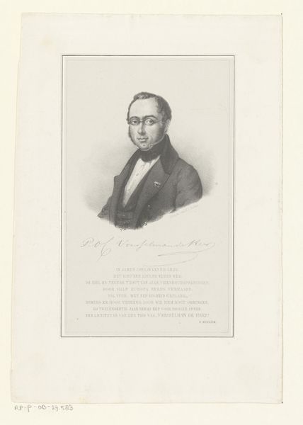 Adrianus Johannes Ehnle created this portrait of S. van Baalen in 1854 using lithography, a printmaking process that democratized image production in the 19th century. Lithography involves drawing an image with a greasy crayon on a stone or metal plate, then treating it with chemicals so that ink adheres only to the drawn areas. This process allows for the creation of multiple identical prints, making images more accessible and affordable. Here, the lithographic technique enables a remarkable level of detail, capturing the texture of van Baalen’s hair and the subtle gradations of light and shadow in his clothing. The rise of lithography coincided with the growth of a middle class eager to consume images, fueling a market for portraits, illustrations, and advertisements. Ehnle's lithograph reflects this shift, where art became increasingly intertwined with commerce and industry. By focusing on the materials and processes behind this portrait, we can better understand its historical context and appreciate the artistry involved in its creation.