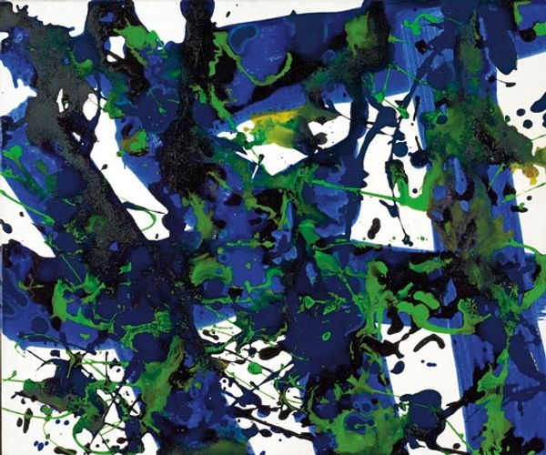 Joseph Pace made this painting, IDM – #245, with what looks like acrylic paint, judging from the glossy finish and bright, bold colours. I love how Pace dives right into the thick of it, layering colours and textures like he’s got nothing to lose. The surface is a playground of splatters, drips, and controlled chaos. I’m drawn to the way Pace uses black lines to create a sense of depth and movement, like vines snaking through a neon jungle. The orange bar at the top feels like a horizon line, grounding the whole composition. It's as if the whole thing is barely held together. This piece reminds me a little of Cy Twombly's wild abandon mixed with the raw energy of early street art. But Pace definitely brings his own flavor to the mix. It’s a reminder that art is always in conversation with itself, a constant remix of ideas and inspirations.