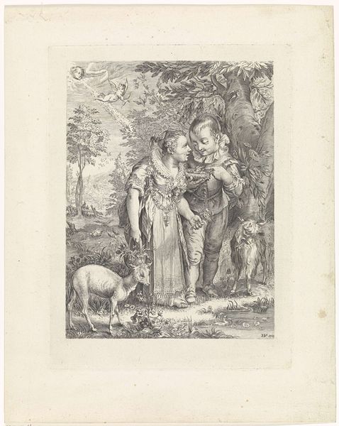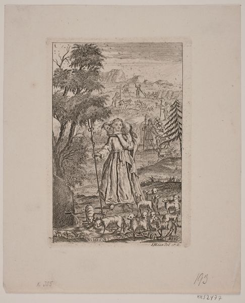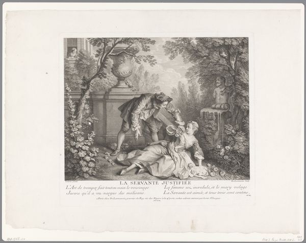 Curator: This engraving from 1797, created by Meno Haas and held at the SMK in Copenhagen, is titled "Illustration med fire personer om en syg dreng i en skov," or, "Illustration with four people around a sick boy in a forest". Editor: Immediately I’m struck by how this piece, despite its delicate lines, depicts such palpable distress. You see the obvious worry and empathy etched on the faces of those gathered around this child. It’s both touching and, well, quietly heartbreaking. Curator: Exactly. Haas captures that pathos inherent to Romanticism, its focus on raw emotion and intense experience. One of the defining goals of history painting. He uses engraving masterfully, employing the sharp, fine lines to evoke the tender emotional scene in a genre that was usually deployed to celebrate kings and battles. Editor: I think it's fascinating how genre scenes like this one can also be read politically. Looking at this from a contemporary lens, I am forced to wonder who gets empathy and who doesn’t. It subtly addresses disparities; while technically "genre," illness often touches vulnerable segments of society hardest. The scene asks the viewer to reckon with these systemic imbalances, but perhaps with some amount of idealization. Curator: Precisely. It’s intriguing to consider the original audience for prints such as this. While depictions of sickness were becoming increasingly common in art and literature, they might not have always translated into widespread social reform. Disseminating the realities or concerns through widely reproducible artworks made social issues a common point of debate among new audiences. Editor: Yes, the medium itself broadcasts an invitation for widespread awareness and perhaps collective action. It presents an idea to a diverse audience. But while there is power in evoking emotions, there's also the risk of sentimentality overshadowing deeper social analysis if these representations don’t acknowledge those wider dynamics that govern illness. Curator: That balance, I suppose, remains the constant challenge. To represent suffering without exploiting it for pure dramatic effect, that can only become fully achieved through acknowledging the structural causes of their marginalization, so art such as Haas' is both historical artifact, and as you say, a potent opportunity for a different, and better future. Editor: I'd agree; It's fascinating to explore these tensions in earlier art forms and see how they resonate, sometimes troublingly, with contemporary art activism. They remind us to keep questioning who benefits, who suffers, and how we might change the frame.