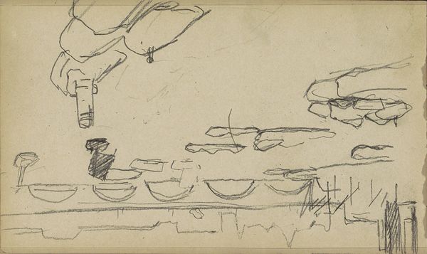 Editor: This is "Intérieur au brasero", a pencil drawing from around 1927 by Henri Matisse. It's such a delicate, almost ephemeral scene. I’m struck by how much detail is conveyed with so few lines, particularly the patterned wallpaper. What compositional elements stand out to you? Curator: The linear quality dominates, wouldn't you agree? Consider how Matisse has rendered the still life on the table. Observe the various weights and rhythms he establishes through the varying pressure of the pencil. How does this linearity contribute to the flattening of space, and what implications does this have for our understanding of depth and form? Editor: I see that, especially in how the fruit bowl seems to almost merge with the surface it’s on. So, the emphasis is more on the arrangement and the surface design, rather than creating a realistic perspective. Curator: Precisely. And notice the strategic deployment of negative space. It's not merely emptiness but an active element contributing to the overall visual balance. Where do you perceive instances of this deliberate negative space, and how does it affect your reading of the artwork's composition? Editor: I notice it particularly around the vase and the draped cloth with fruit on the table. The breathing room makes those elements feel lighter, less grounded perhaps. Curator: Exactly. That "lightness", as you call it, counters the more dense patterns elsewhere. The structural interplay creates visual interest through contrast. Does this analysis influence how you see modernist principles within the piece? Editor: Yes, I'm beginning to see it less as a simple interior scene and more as a study in form and line, almost an abstract investigation. Thank you. Curator: An apt conclusion. Our examination reinforces the power of visual language in creating an immersive and compelling composition.