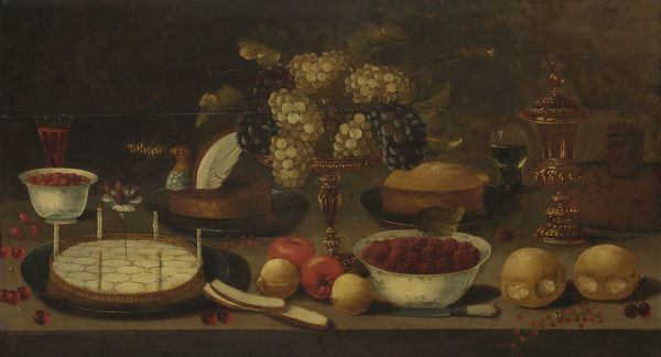 Michiel Simons painted this still life with oil on canvas, presenting a bountiful arrangement. Consider the peeled lemon, a recurring motif in Dutch Golden Age painting. More than mere citrus, it embodies a complex duality: its initial sweetness yielding to a sharp bitterness. Think of classical depictions of the Fall, where fruit symbolizes temptation and the fleeting nature of earthly pleasures. The lemon, then, becomes a memento mori, a reminder of life’s transience. Notice how the silver jug catches the light, its reflective surface mirroring the scene yet distorting it. Recall how in Jan van Eyck’s "Arnolfini Portrait", the mirror encapsulates not only the visible world but also unseen truths and hidden witnesses. The artist invites us to contemplate how symbols resonate across time, evolving yet retaining echoes of their original significance. The emotional power lies not just in the objects themselves but in the collective memories they evoke, engaging us in a dialogue between the seen and the unseen, the present and the past.
