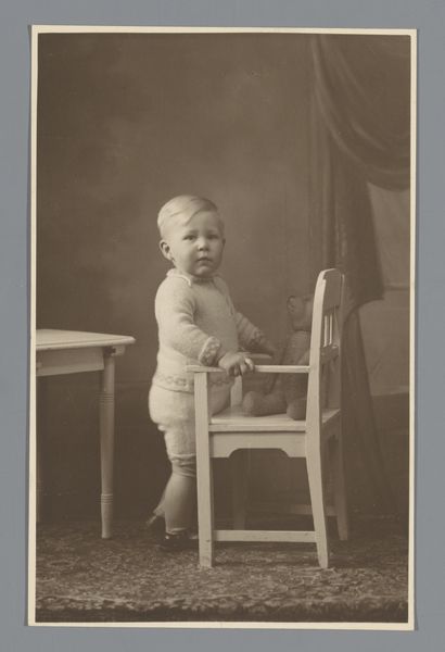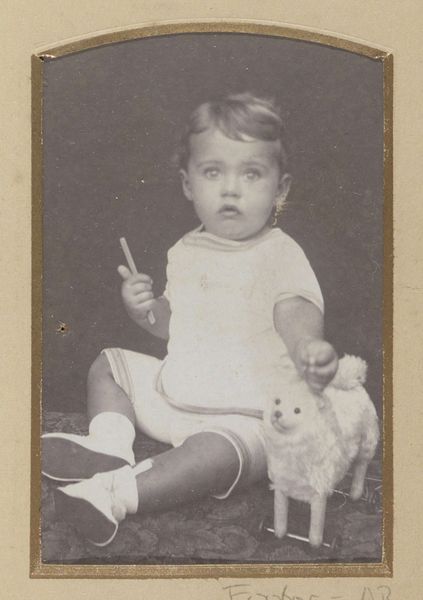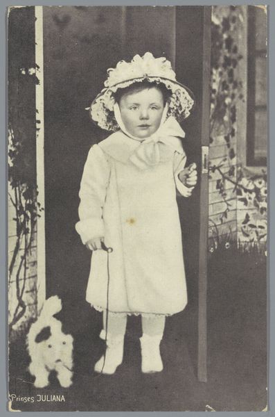 This is a black and white photograph of Beatrix, Queen of the Netherlands, made by an anonymous photographer. It's hard to pin down exactly when it was made, but it presents us with an innocent scene. The photo has a lovely tonality, with deep blacks and bright whites. It's a study in contrasts, right down to the little Queen's outfit. It feels really immediate, like a snapshot lifted straight from life. It's also a bit grainy and the lighting is uneven, but in a way, that's what makes it so intimate. That dark patch on her face, right where her fingers are, is fascinating. It makes me think about how we remember things, how the details can get smudged or obscured over time. There is something very human about that uncertainty, about the way the photo doesn't try to hide its own imperfections. It reminds me of some of those early photos by someone like Julia Margaret Cameron who embraced the blur.