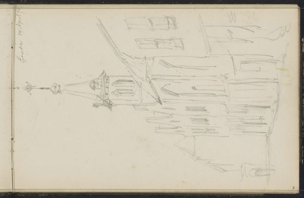 Editor: Here we have Maria Vos’s “Church at the Foot of a Mountain,” a pencil drawing from the 1870s, currently held at the Rijksmuseum. I am really struck by the tentative, almost ephemeral nature of the marks. It feels like a fleeting moment captured on paper. What catches your eye about it? Curator: As a materialist, I see more than just a landscape sketch. I am interested in how this drawing reveals the social context of artistic production in the 19th century. Consider the availability of drawing materials— pencils, sketchbooks, paper quality. These details reflect a rising middle class with access to affordable artistic tools and a growing leisure culture. Editor: So, you’re saying the materials themselves tell a story? Curator: Precisely. Pencil, readily available by the mid-19th century, democratized drawing. No longer were elaborate, expensive preparations necessary. Vos could quickly capture impressions en plein air. What about the church itself, what can that denote? Editor: I suppose that churches are monumental pieces of architecture with different phases of manufacturing and types of material; therefore, in this sketch, does it denote the social capital available at the time for construction projects? Curator: Exactly. The construction materials, such as the pencil and paper, along with the actual building blocks needed to create such an establishment at the foot of the mountain further explore material value and worth. In short, Vos wasn’t just depicting a scene; she was, perhaps unwittingly, documenting a shift in artistic production and its relationship to society and even economics. Editor: I never thought about a landscape in terms of economic or societal value. Thank you. Curator: Think of the sketchbook itself! As it could be manufactured at an affordable cost for artists of the time, consider how significant this type of accessibility would impact art in terms of the creative process and more specifically, accessibility for all different kinds of individuals. Editor: That really changes how I look at what used to just seem like a simple sketch.