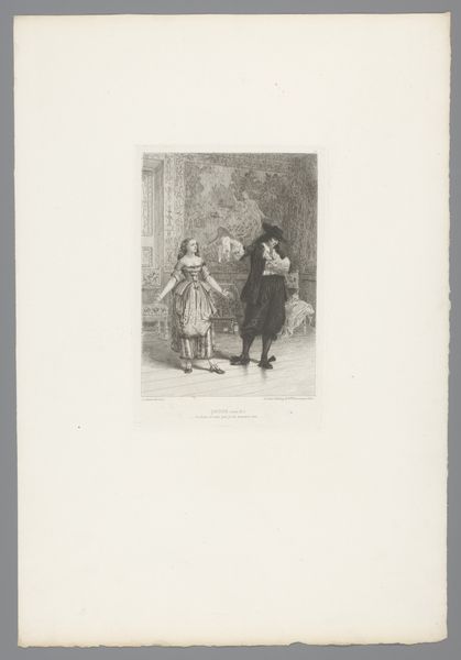 This is Jean-Antoine-Valentin Foulquier’s ‘Clitandre buigt voor Armande’. The bow, the reverence: gestures laden with history. Here, Clitandre inclines before Armande, a symbol of deference that echoes through time. Consider the kneeling pose, from supplication to the gods in ancient frescoes, to the medieval knight's fealty to his liege. The act of bending the knee is a powerful visual shorthand for submission, respect, or even love. Look at the pose, it can be traced back through centuries, a direct descendent of similar poses throughout history. These gestures carry the weight of collective memory, subconscious echoes of past rituals and social hierarchies. Over time the meaning has changed and evolved, but continues to engage viewers on a deep, subconscious level. The non-linear progression of this symbol, how it resurfaces and evolves, speaks to the cyclical nature of human expression.