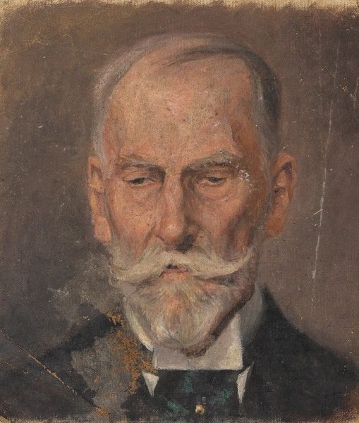 Editor: We're looking at a portrait in oil paint, "Johannes Bosboom, Painter," created between 1885 and 1891. It’s quite a stark image; the subject's profile is very prominent against a dark background. How do you interpret this work? Curator: Well, let’s think about the social and artistic climate of the late 19th century. Portraiture, particularly of men in positions of power or influence, was a loaded practice. Whose stories get told, and how? This painting, with its realist yet somewhat impressionistic brushstrokes, invites us to consider Bosboom’s place in that society, and who gets to define “painter." The very act of painting another painter holds a lot of commentary on class. Editor: That's a fascinating point. It does seem to be a statement in itself, depicting one artist by another. Curator: Exactly. Think about how artists like Courbet were challenging academic conventions around this time, focusing on everyday subjects, pushing back against elitist art traditions. Bosboom, painted by Dankmeijer, exists in this sphere too. How might their relationship influence the portrayal of Bosboom? The quiet intensity almost hints at subversion of authority, in painting if not society at large. Editor: I see what you mean. So it's not just a portrait of an individual, but a commentary on the art world itself, and the people within that hierarchy? Curator: Precisely. It makes you wonder about patronage, artistic circles, and the power dynamics at play in the art world. And, crucially, what opportunities were available to painters outside of Bosboom's demographic, and why portraits such as these were prioritised over theirs? Editor: I never would have thought about that from just looking at this portrait. Thanks for sharing this analysis! Curator: My pleasure! Hopefully, it shows how portraits reflect much wider socio-economic considerations and challenges of identity.