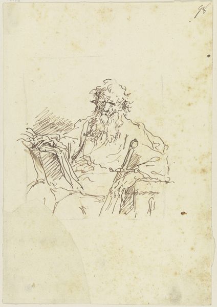 Dirck de Bray created this head of an old, bearded man, using etching techniques on a metal plate. Notice how the composition is dominated by the man's face, rendered with a high level of detail. The artist plays with light and shadow, creating a sense of depth and texture, particularly in the beard and hair. The fine, deliberate lines work together to define form and convey the weight and wisdom associated with age. Within the structuralist approach, the artwork presents a dichotomy between youth and age, where the signs of aging—wrinkles, a drooping gaze—serve as potent signifiers. The downward cast of the man's eyes may engage with the philosophical theme of introspection. The artist invites us to contemplate the signs and meanings we attach to the image of aging. The artwork's enduring power lies in its capacity to provoke thought and emotion through its form. We continuously re-evaluate the relationship between the visual language of art and the cultural codes that shape our understanding.