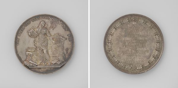 This silver medal, now almost two centuries old, was given to those attending the launch of the ship "Broedertrouw" in Dordrecht. It was built by Johann Schouten, grand master of the Freemasons lodge "La Flamboyante." The medal's design is skillfully realized in relief. On one side, an anchor, sword, and foliage represent maritime prowess and perhaps masonic symbolism. The other side bears an inscription commemorating the launch date, encircled by a laurel wreath. Consider the silversmith's labor involved in this token’s production. Each medal would have been individually struck using dies. These dies would have required a high degree of skill to engrave, and the metal would need to be carefully worked to capture all its details. The medal encapsulates a specific historical moment, linking the skilled labor of shipbuilding with the commemorative craft of the silversmith. By looking at this object, we can explore the rich networks of craftsmanship and social connections that shaped its creation.