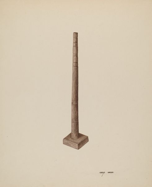 Mary Hansen’s “Wagon Jack” is a drawing of, well, a wagon jack. It's rendered in a muted palette and what looks like graphite, capturing the wear and tear of the tool. There’s something about the texture that really grabs me. It's like Hansen’s hands are right there, feeling the grooves and imperfections of the wood. She translates these textures into her rendering, with each line and shading marking out form and character. Look at the area where the arm of the jack meets the vertical post. The way the light catches the wood, and the soft shadows that define the form, it gives the sense of age and use. You get to feel the weight of the object. Hansen's work reminds me of Charles Sheeler, who also had a fascination with industrial objects. But unlike Sheeler’s sharp, almost clinical precision, Hansen brings a warmth and intimacy to her work. It's a reminder that even the most ordinary objects can be a source of beauty and wonder, and that art is an ongoing conversation across time, constantly reinterpreting and reimagining the world around us.