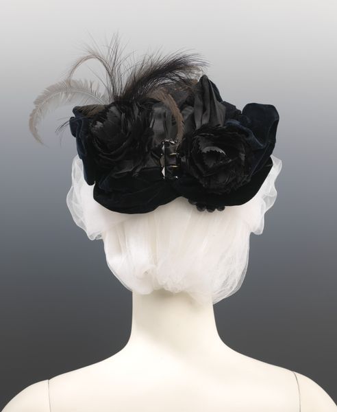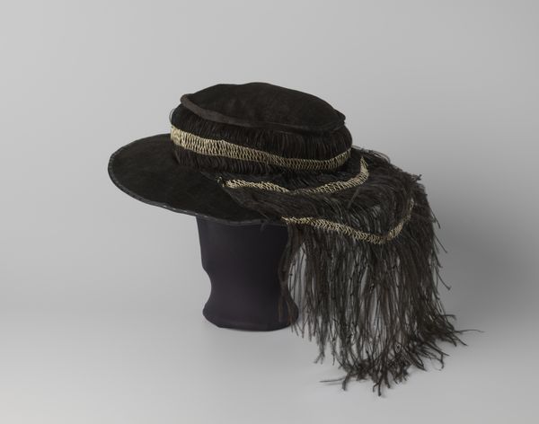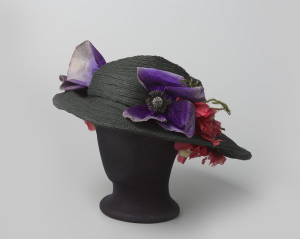 Editor: So, this photograph, simply titled "Hat," dating from the 1880s, captures a dark-colored hat with a dramatic bow. It's striking! How would you interpret this piece, especially considering its historical context? Curator: What I see here is more than just a photograph of a hat. I see a document reflecting the constraints and aspirations of women in the late 19th century. The hat itself, with its elaborate decoration, speaks to the importance of appearance and the performance of femininity dictated by society at the time. Editor: The performance of femininity? Can you elaborate on that? Curator: Absolutely! Think about it. Fashion, especially for women, was—and often still is—a powerful tool for social signalling. A hat like this could signify a woman’s class, marital status, and adherence to social norms. It also becomes a symbol of the objectification and commodification of women within a patriarchal system. Who was Mme. Mantel? Did this mean luxury or confinement to a specific gender role? Editor: That’s a perspective I hadn't fully considered. So, it's not just an aesthetic object but a symbol of social power dynamics? Curator: Precisely! And consider the act of photographing it. Photography in the 1880s was still a relatively new medium. Documenting fashion becomes another layer of solidifying these social constructs and disseminating them widely. It's a complex intersection of art, commerce, and gender politics. Editor: I'm definitely going to view fashion photography from that era differently now. It makes you wonder about the identity of Mme. Mantel too, and how she felt about wearing such an object! Curator: Indeed! And that's the power of art, isn't it? To provoke questions and force us to re-evaluate our assumptions about the world and the objects we create within it.
