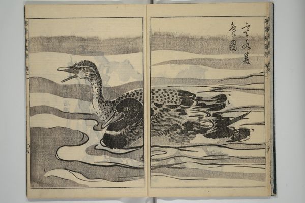 Hishikawa Moronobu created this print of cranes on paper in the late 17th century. This work exemplifies ‘ukiyo-e’, a type of Japanese printmaking that flourished during the Edo period. These prints were typically made through woodblock printing, a labor-intensive process requiring skilled artisans to carve the image into woodblocks, apply ink, and then press the block onto paper. Moronobu's designs, rendered in ink on paper, highlight the stark contrast and delicate lines achievable through woodblock techniques. The evenness of the blacks shows an intimate understanding of inking, pressure, and suitable papers. The production of ukiyo-e prints was closely tied to the rise of a merchant class and increasing urbanization. They were relatively affordable, meeting the demand for art among a broader public, quite unlike traditional painting. The images captured scenes of daily life, landscapes, and popular culture, reflecting and shaping the tastes of their time. Consider the collaborative nature of printmaking, and the ways in which the economics of production influenced both the subjects depicted and the stylistic qualities of the prints themselves. This offers insights into the intersection of art, commerce, and society in Edo-period Japan.