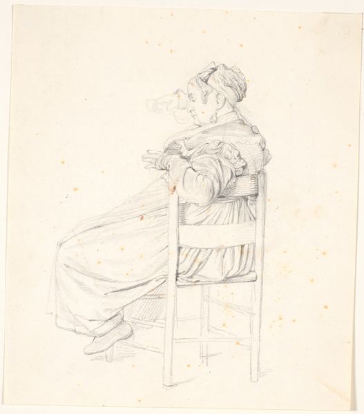 Editor: Here we have Henri de Toulouse-Lautrec’s "Luce Myrès (Front View)" from 1895, an etching and drawing now at the Met. It’s so delicate, almost ephemeral. The red chalk or ink seems barely there, but it captures this performer so expressively. What do you make of it? Curator: Well, seeing this piece, one must consider Lautrec's broader social milieu. The late 19th-century Parisian nightlife, and particularly the cabaret scene, served as his primary muse and source of income. How does this drawing reflect the increasing commercialization and popularization of entertainment culture at the time? Editor: It definitely feels like a candid snapshot, not a formally posed portrait. Like he caught her backstage. Curator: Precisely. He's not just representing Luce Myrès, but also the theatre's entire ecosystem. Think about the public perception of performers like Myrès during that era. Were they revered, criticized, or both? And how does Lautrec, through his artistic choices, seem to position them? Editor: It’s interesting you say that. Her eyes are closed; she doesn't quite meet our gaze. It's a bit vulnerable, even voyeuristic. Maybe he is critiquing that objectification? Curator: Possibly. Lautrec was very aware of the gaze, especially regarding gender and class. The seeming informality—the quickly sketched lines, the impression of a fleeting moment—can be interpreted as challenging the rigid social structures, don't you think? Consider where these prints would have been displayed and consumed. That’s part of their social impact. Editor: That’s a good point. I hadn’t considered where these images would circulate outside the art world itself. Thanks, that really gives me a lot to think about regarding its public role. Curator: My pleasure. It is often through understanding this historical and social context that we truly appreciate a piece like this.