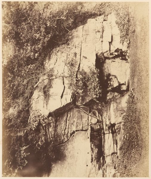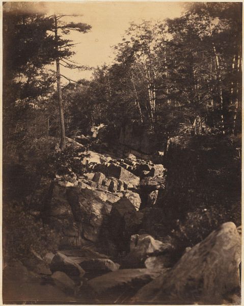 Editor: Here we have John Adams Whipple's photograph, "Untitled (view of waterfall in the White Mountains)." It has such a tactile quality. What stands out to you? Curator: I'm struck by how the image highlights the industrialization of leisure. Photographers like Whipple provided visual commodities, souvenirs of nature, if you will. How does this image reflect access and consumption of landscape? Editor: That's interesting, I hadn't considered it as a commodity. Curator: Think about the logistics involved in capturing this scene: the equipment, the transportation, the target audience. It really reframes our understanding of nature. Editor: I see your point. It's less about pure wilderness and more about a constructed experience. Curator: Exactly. It’s a blend of art, science, and commerce, all wrapped up in a single photograph. Editor: I'll definitely be thinking about that interplay of art, science, and commerce going forward. Thanks!