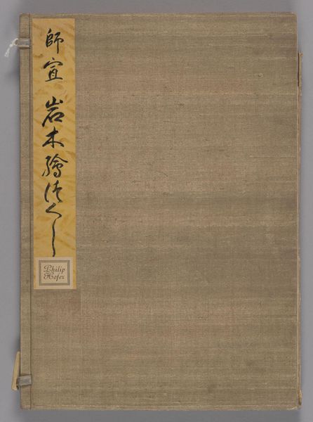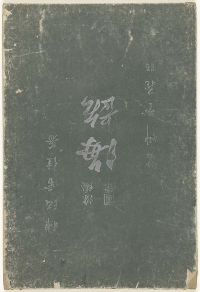 Curator: Let’s take a look at “Nieuwe zee der kunsten - 18” attributed to Furuya Korin, possibly created between 1903 and 1912. It is a print on paper, using ink, currently held at the Rijksmuseum. Editor: It feels austere. The color palette is muted, and yet those stark white vegetal designs almost dance across the surface. Curator: The "Nieuwe zee der kunsten" or "New Sea of Arts" points to a shift in artistic production. I see here not just an individual print, but part of a larger compilation. These collected prints were carefully bound and even dyed, which suggests the makers intended the volume itself to be viewed and appreciated. It transforms the role and context of these printed images. Editor: Those vegetative-like designs, dispersed sparsely around the calligraphy, do they refer to any specific flora? Perhaps, they are meant to evoke concepts of renewal and organic growth implied in the title, acting almost like subtle symbols of rebirth and new artistic movements. Curator: Exactly. Note how ink and paper – mass-produced materials in that period – became the tools for a kind of cultural record-keeping. We might even read them now as a conscious archiving of artistic change, distributed widely thanks to printing technologies. The binding is as crucial to its significance as the prints contained within, wouldn't you agree? Editor: Absolutely, the binding hints to that conscious curation you were talking about. The purple string binding it adds to that visual language, its meaning in connection with royalty or spirituality adds layers to what the entire piece tells. This is an aesthetic choice enriching the symbolic depth. Curator: I see a commentary on artistic accessibility through medium and intentional archiving through assembly. Editor: Yes, that interplay creates this intriguing, silent dialogue between art and symbol, prompting us to contemplate deeper meanings in simple forms.