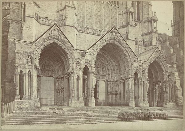 Curator: Let's consider Frederick H. Evans' "Ely Cathedral: Presbytery, from an Engraving," created around 1891. A magnificent photographic print currently residing at The Art Institute of Chicago. Editor: The repeating arches and intricate stonework definitely create a sense of awe. What strikes me is how Evans captures the sheer verticality and almost seems to be inviting a dialogue with spiritual heights, and how it makes me feel so small! How do you interpret this work, particularly considering its historical context? Curator: Well, I look at it through a lens of power and representation. The Church, especially during the 19th century, was a site of immense social control and influence. Evans' romantic portrayal, using the aesthetics of Pictorialism, tends to overlook the complicated legacy of institutions like Ely Cathedral. Who did this space serve? Whose voices were amplified within these walls, and whose were silenced? Consider the workers, often nameless and faceless, who built such structures. Editor: So you’re suggesting that we need to question the narrative of purely aesthetic or spiritual appreciation and consider the socioeconomic implications? Curator: Precisely. How does this image function as a form of visual propaganda, reinforcing existing power structures? Photography at this time had the power to shape perceptions. By focusing solely on the beauty, are we complicit in erasing the struggles and inequalities inherent in the cathedral’s history? Also, Evans was consciously imitating engraving techniques - does that also create another layer of meaning and power, suggesting photography’s attempt to legitimize itself as art, with religious institutions as its vehicle to the higher spheres? Editor: I hadn’t thought of it that way, but now I'm seeing the photograph not just as a beautiful depiction, but as a document deeply intertwined with complex power dynamics and aspirations for artistic recognition. Thank you! Curator: Absolutely! It’s about understanding that art is never neutral; it always carries ideological weight. Hopefully you can see now, in what ways, architecture also holds similar attributes.