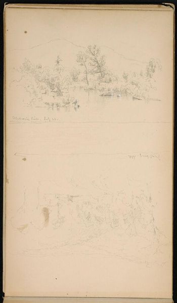 Editor: Here we have Sanford Robinson Gifford's "Three Small Landscapes; Male Profile Head," a pencil sketch, undated, in the Harvard Art Museums. It feels intimate, like a peek into the artist's personal sketchbook. What strikes you about it? Curator: The sketchbook format invites us to consider the relationship between observation, representation, and power. Gifford, a white male artist, is capturing landscapes that may have been sites of colonial expansion and Indigenous displacement. What responsibility do artists have in depicting these spaces? Editor: That's a perspective I hadn't considered. So, by sketching these landscapes, is Gifford participating in a larger narrative of ownership and control? Curator: Precisely. And the male profile—who is he? What is his relationship to these landscapes? These are questions that help us understand the cultural context of Gifford's work and its potential implications. Editor: This has definitely made me think about landscape art in a completely new light. Curator: It's important to remember that art is never neutral; it always carries a social and political charge.